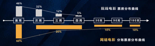 网络电影分账票房分布曲线显示,爱奇艺A级网络电影上线首周分账票房占全生命周期分账票房的60%左右,部分长尾表现优秀的网络电影首周分账票房占比40%,且首周占比有进一步降下降趋势。网络电影所展现的长尾效应,意味着片方可以制定更长的营销推广周期来充分挖掘市场潜力。