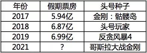 从今年的情况来看,算是有一个延续,三天大盘可能还会保持在6亿+的级别,市场的停滞不前,其核心原因便来自于项目的乏力,想要有所突破,必须要靠黑马的爆发。而今年的清明档同样是一个由好莱坞大片所带动的档期,《哥斯拉大战金刚》在清明档刚好处于上映的第二周,会爆发出二度的能量,有机会领衔市场。