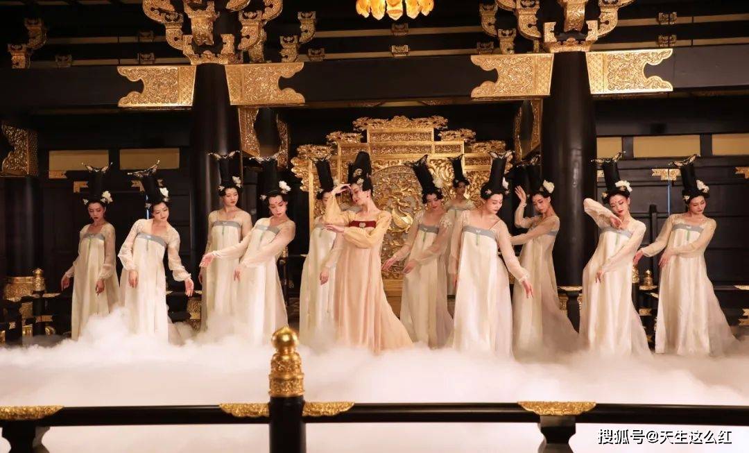 九州池应天门内,是重庆歌舞团的小姐姐在排练《丽人行》。
