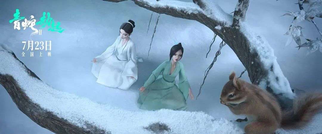《白蛇缘起》打安全牌的明智,在于移植了《青蛇》的百合潜文本,但没有花大篇幅表述两人纠葛的同性之爱。片尾的双人镜头,直接戏仿徐克电影中的沐浴画面。通过“姐姐,我们已经朝夕相伴百年了”等台词,让观众暂时抛却男性符号秩序话语。