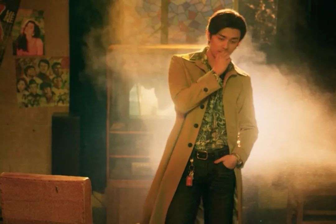 如何把30年前的图景呈现?求精求细的场景道具加分许多,宽画幅、旧滤镜,录像厅、卡拉OK,年代感十足的港片海报下,主角萧闯穿花衬衫喇叭裤,学着周润发的模样,换一种方式看《英雄本色》。