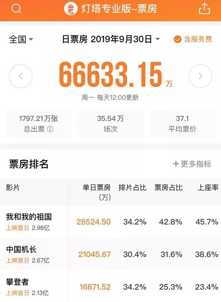 国庆档期首日,三片票房均超过1.6亿,总票房6.6亿,创下了新的国庆档单日票房纪录。