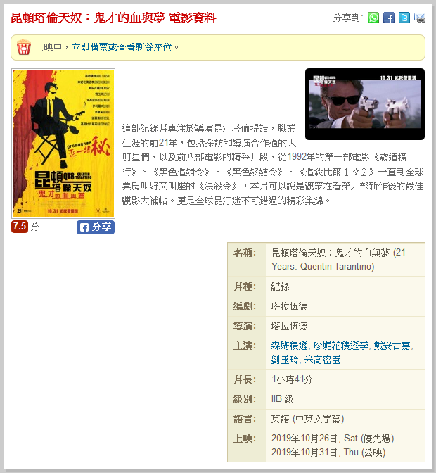不过出于众所周知的原因,《昆汀·塔伦蒂诺的21年》在香港被评为IIB级;在全世界绝大多数国家都实行分级制的当下,《昆汀·塔伦蒂诺的21年》依旧与广大的中国观众隔绝,和“金狮奖”得主《小丑》一道成为遗珠。
