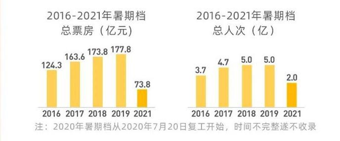 据报告,今年暑期档,我国电影市场共收获票房73.8亿,影院平均上座率为5.5%,观影总人次达2.0亿,国内各院线平均票价36.4元。相较2019年,2021暑期档总票房同比下降58.5%,观影人次也同比下降60%。