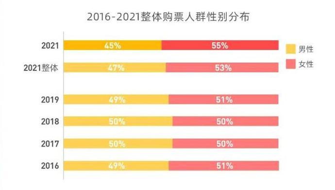 比较特别的是,今年暑期档在近几年暑期档中首度打破“性别平衡”, 女性用户观影占比明显增多,占到购票人群的55%。截至目前,在2021年整体购票人群数据中,女性人群也占到了53%。今年暑期,还有更多25岁以上的成熟人士走进电影院消费,25岁以上消费者占据整体购票人群的67%,暑期观影人群正在经历转变。