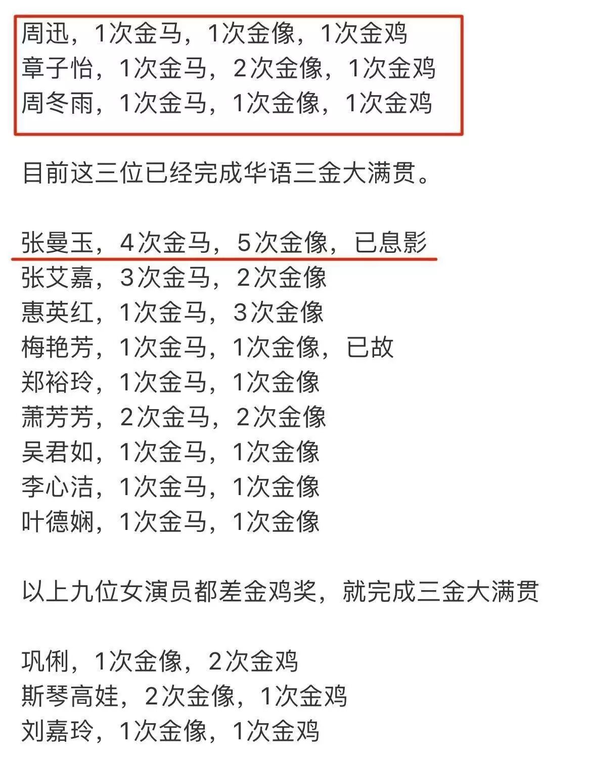 曾经折服国际影坛的张曼玉都直接被金鸡奖拒之门外得,可见金鸡奖的严格,直到如今张曼玉这位叱咤风云、在娱乐圈霸屏一方的老演员都未曾获得金鸡奖。