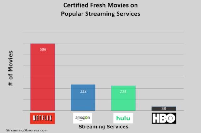 事实上,Netflix拥有比亚马逊、Hulu和HBO Now加起来更多的认证新电影。