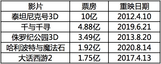 考虑到重映纪录,又离不开詹姆斯·卡梅隆这个名字了,2012年3D版《泰坦尼克号》直接在内地市场横扫10亿+票房,以重映片的身份拿到了当年的票房亚军。如今《阿凡达》的重映,具备了挑战《泰坦尼克号》重映票房纪录的可能,要知道当年有多少观众抱有巨大的遗憾,错过了在大银幕观看《阿凡达》的机会。