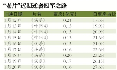 新片在市场上没有反应,“老片”随着放映战线的拉长,虽然票房占比上升,但票房也逐渐呈现出疲软态势,从而导致春节档前的电影市场格外冰冷。