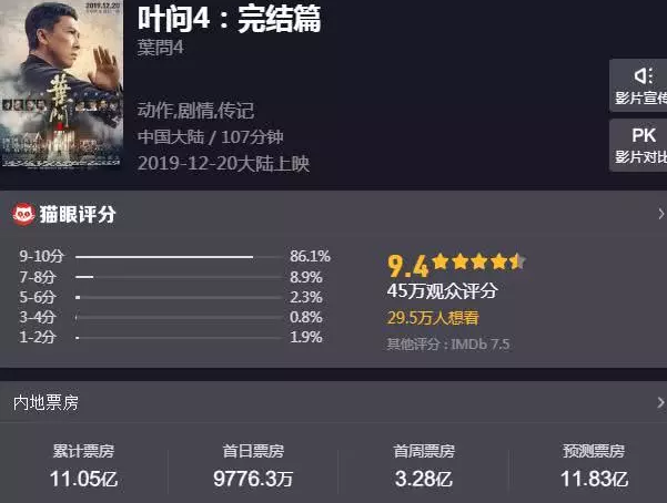 而近日随着甄子丹《叶问4》上映,果然又迎来了一波观影热潮,创造了功夫片最后的辉煌!