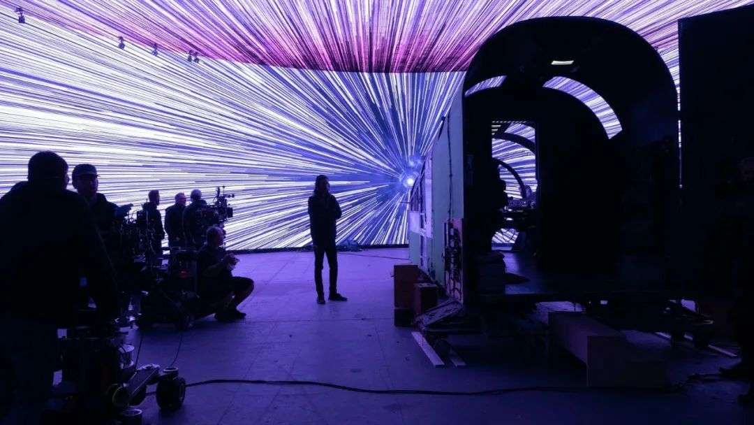 在一个由LED组成的虚拟拍摄场地里,真实人物与虚构场景完全融为一体,所拍即所得。