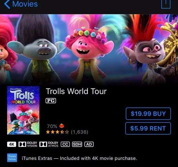 另一方面,北美疫情愈演愈烈,成为整体扭转战局的计划外因素。许多好莱坞大片在此期间都缩短了影院公映和在线电影的窗口期,而环球成为第一个宣布将院网同步上线的:动画电影《魔发精灵2:世界之旅》在4月10日北美上映的同一天上线数字版。尽管定价高达19.99美元,却累计售出超500万次,数字租赁费超1亿美元。