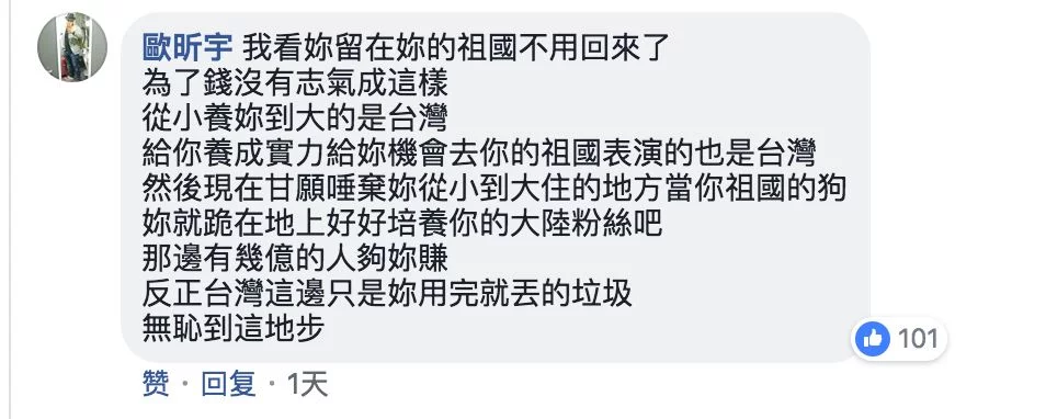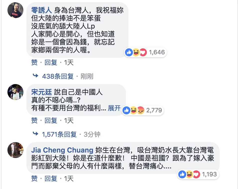 还有台湾省媒体"煽风点火",引用台湾演艺圈人士的话称,"如果换个角度想,宋芸桦这种恶到极致的宣言,会不会其实是某种程度的抗议?"文中称,宋芸桦极尽所能写出这番话,可能也是一种赌气的宣言。文中最后表示"我的艺人朋友也经常遇到这种问题,昨天他才跟我说他跟中国大陆的制片高层谈话的时候,听到对方说'台湾省'拳头都硬了,但也不能怎样 。"