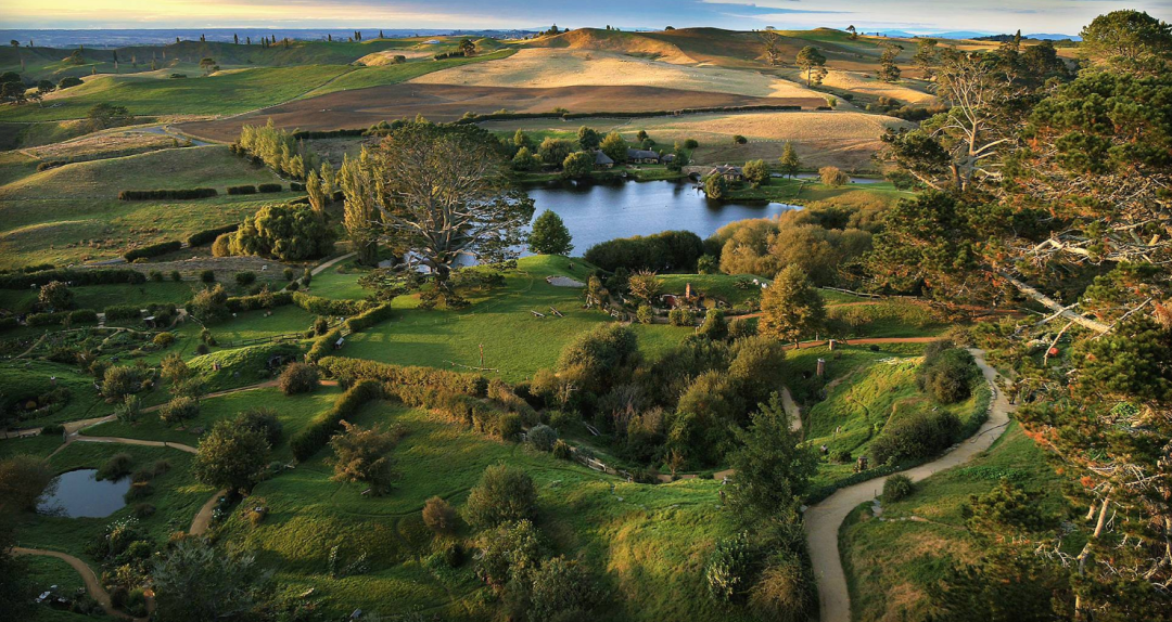 在之后的 9 个月里,剧组在这里搭建了 37 个霍比特洞穴,修建了 1.5 公里的道路,最终打造了一个梦幻的「霍比屯」(Hobbiton) 出来。