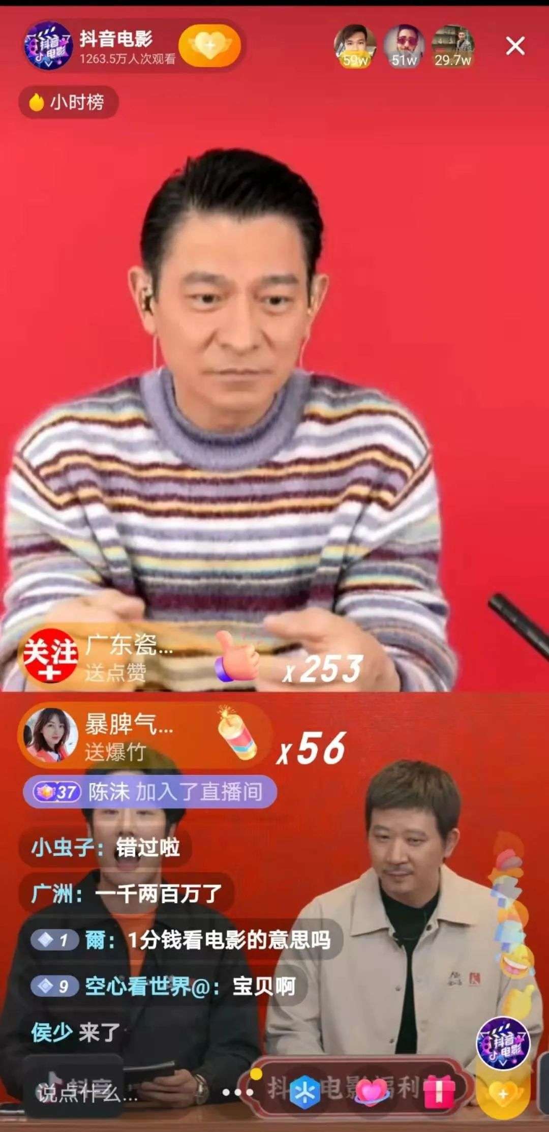 2月7日,刘德华出现在抖音电影直播间内发放福利,直播间内0.1元抵用券一经上线便被一抢而空,整场直播下来,吸引了3200万人观看,可以说非常有牌面了。