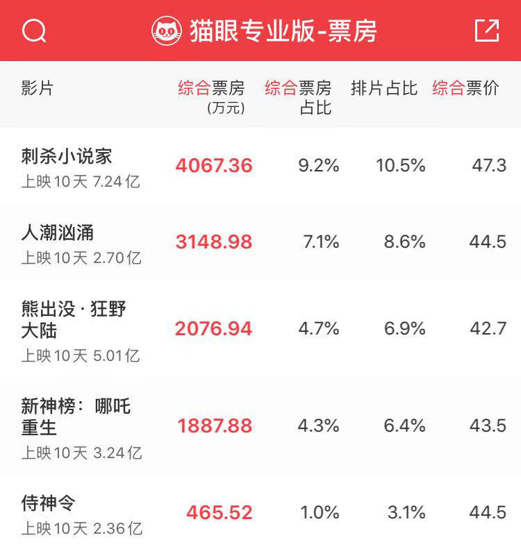 截止写稿时间,《刺杀小说家》累计票房刚刚突破7亿,而《人潮汹涌》在经历导演求排片之后,排片仍未超过10%,累计票房尚未突破3亿,而《侍神令》则更加尴尬,垫底春节档,票房2.36亿。