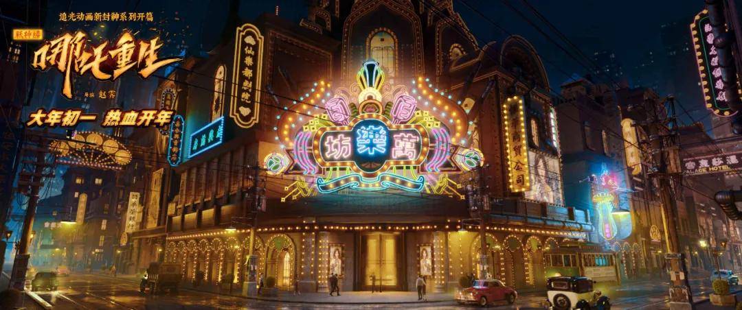 美术上,《哪吒重生》的世界观构建大气磅礴,东海市被设定为贫富区分立的“东方中国风+西方朋克”的架空城市。平民区参考上海石库门、老上海街道为原型,打造民国风韵味市井贫民窟图景;富人区取材北京首钢遗址公园,以ART Deco、蒸汽朋克为主要风格,奢华程度又堪比曼哈顿。