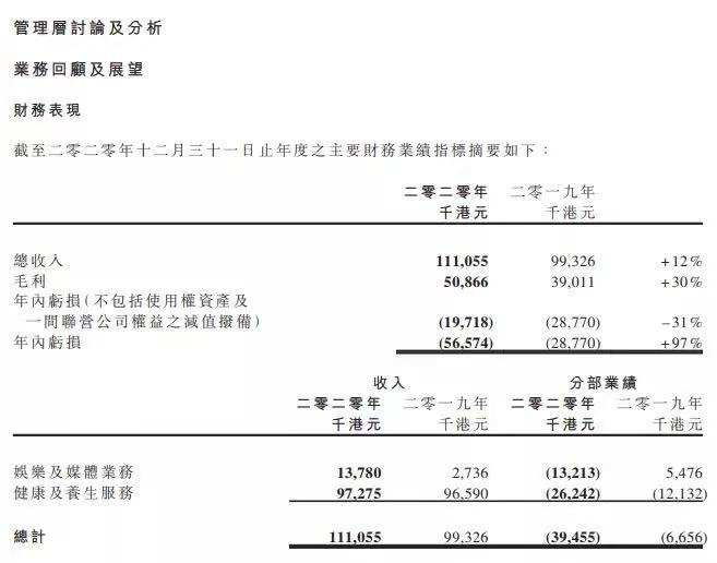 这种情况下,腾讯华谊娱乐的业绩也就不是十分乐观。财报资料显示2018年、2019年营业收入分别为1.09亿港元、9932.6万港元和1.11亿港元;净利润分别为7430.8万港元和亏损2877万港元、亏损5657.4万港元,从2020年现有的数据来看,亏损趋势有所扩大。