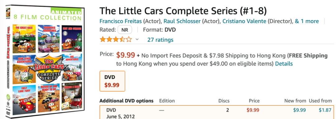就拿Video Brinquedo公司制作的典型案例“The Little Cars”系列来说,从2008年到2012年,这个系列一共出品了八部动画作品,每部售价约8.28美元,合辑售价9.99美元,若算上直接销售、二次销售、碟片租赁等所有收入来源,便是一串串可观的数字。
