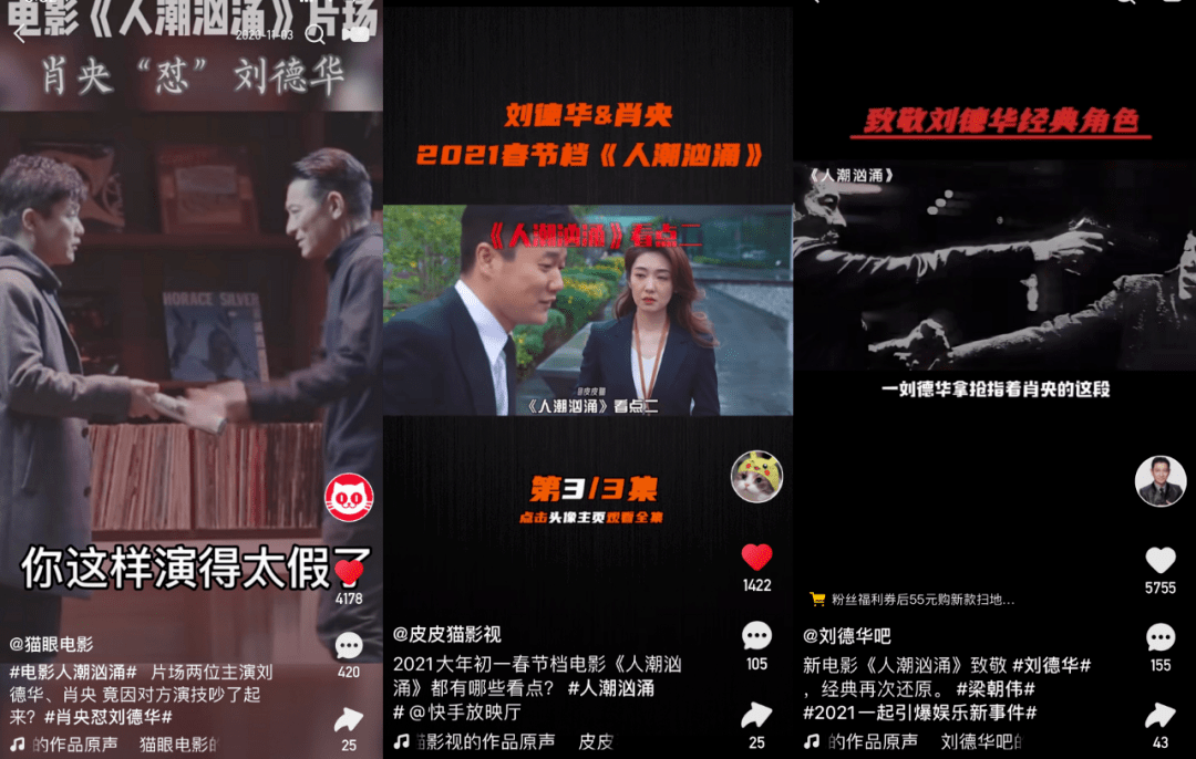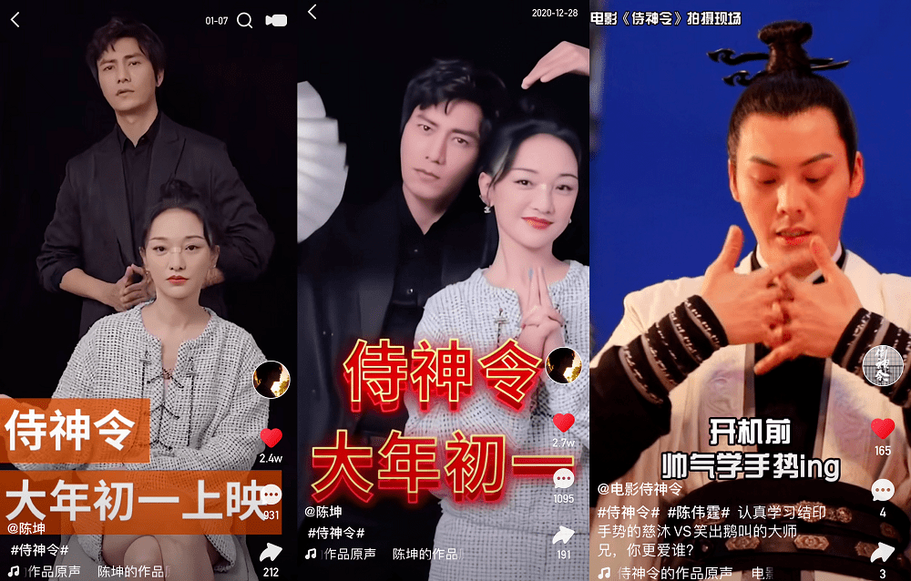 当下是营销追着短视频跑的时代,片方开官抖号已成宣发“标配”,快手2020发力宣发的成绩有目共睹。无论春节档前景如何,几乎未影响到各片方在短视频平台上的营销节奏,花式营销手段仍层出不穷。