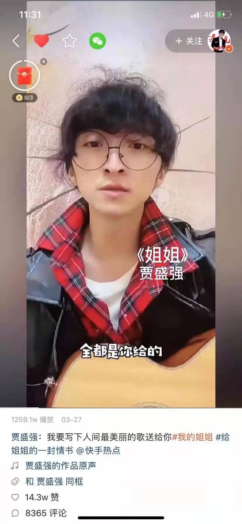 快手音乐人贾盛强曾是2013年快乐男声全国十强,曾以一首《姐姐》晋级,后来这首单曲收录在他的合辑《追梦敢不敢》中。如今,他再次弹唱《姐姐》,在快手上引发了翻唱《姐姐》的二创风潮。