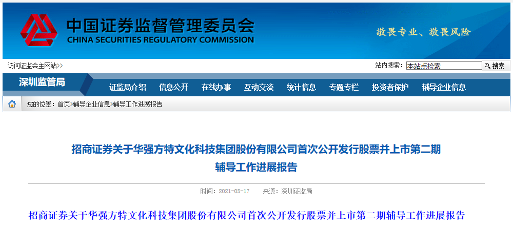 去年12月18日,华强方特再度启动IPO的助跑,这已经是该公司第三次筹备IPO。5月17日招商证券公布了华强方特IPO二期辅导工作进展报告,显示方特的上市工作已经进入了最后阶段。
