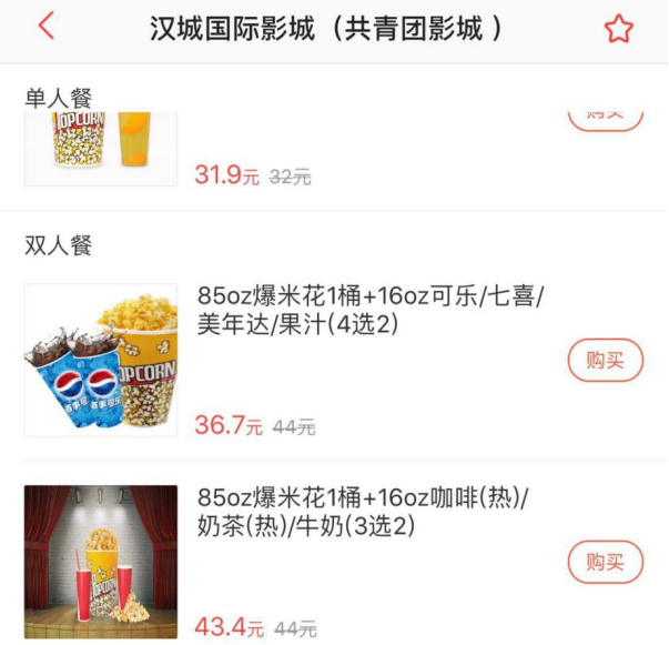 ▲影城网售卖品价格