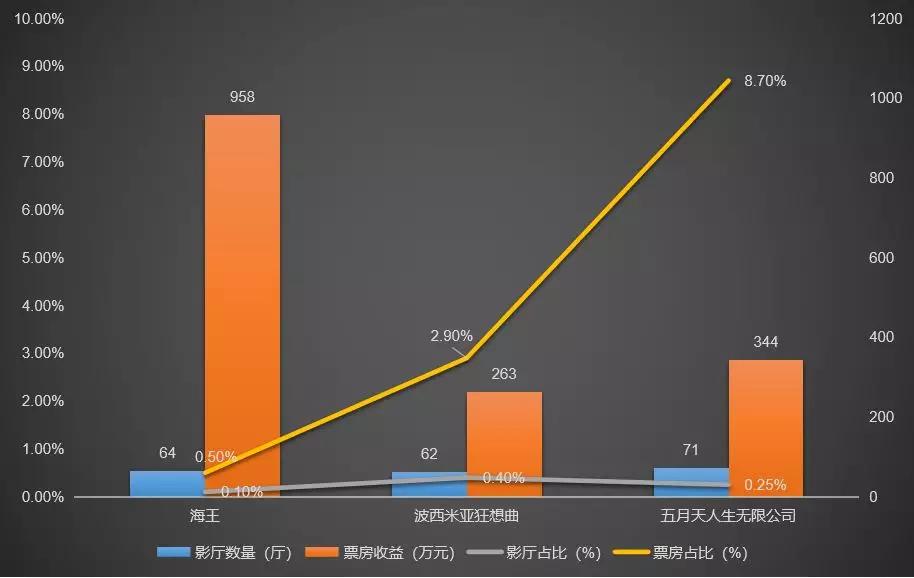 根据CJ 4DPLEX公司提供的数据,截止到6月2日,《五月天人生无限公司》ScreenX版本的上座率为8.1%,4DX with ScreenX融合厅的上座率为23.1%,不仅如此,放映银幕和票房占比相较《海王》和《波西米亚狂想曲》都有了显著的提升。