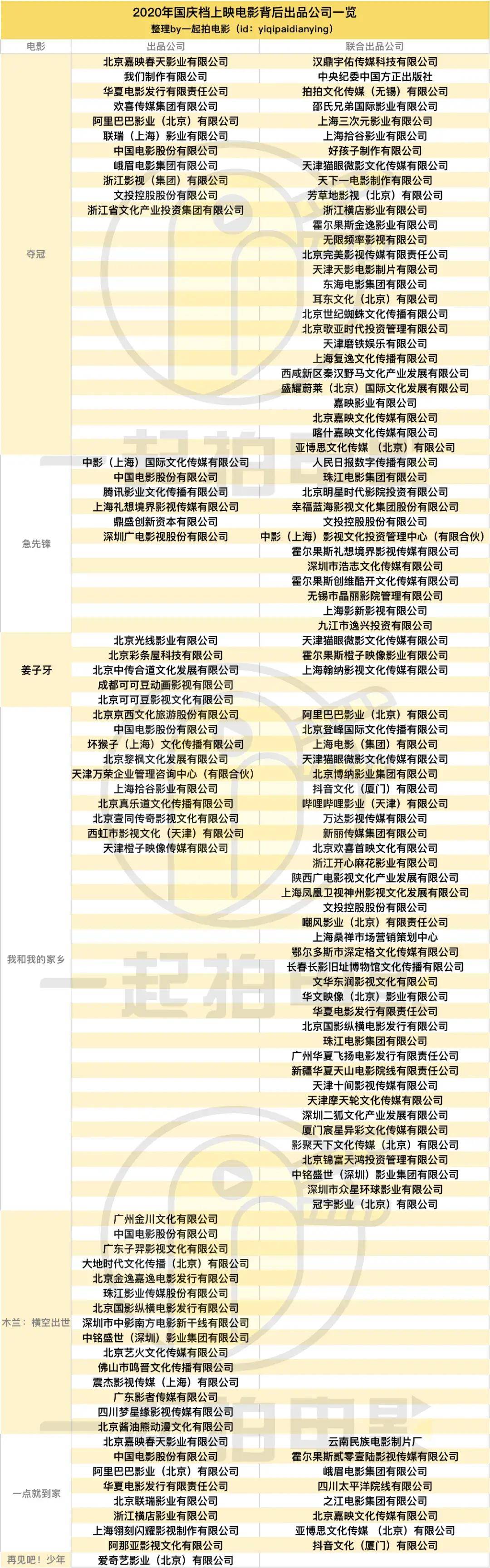 2.《一点就到家》和《再见吧!少年》的公司信息来源于猫眼专业版,其它则来源于各影片的发行通知。