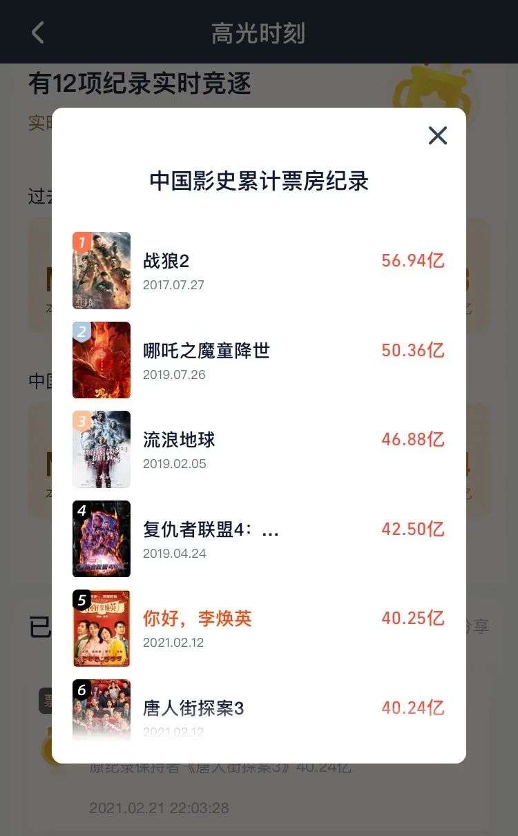 伴随着近日里的优异表现,《你好,李焕英》已进入中国影史累计票房前十名,据灯塔专业版数据显示,截至2月21日22点03分,《你好,李焕英》位列中国影史累计票房的第五名。