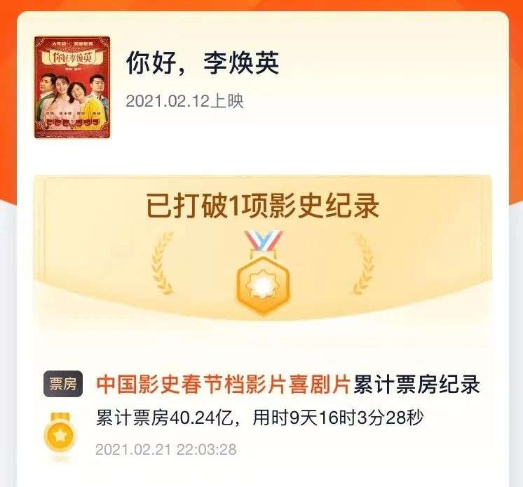 上映10天后,《你好,李焕英》后来者居上,截至2月21日22点03分,累计票房40.24亿元,正式超过《唐人街探案3》。