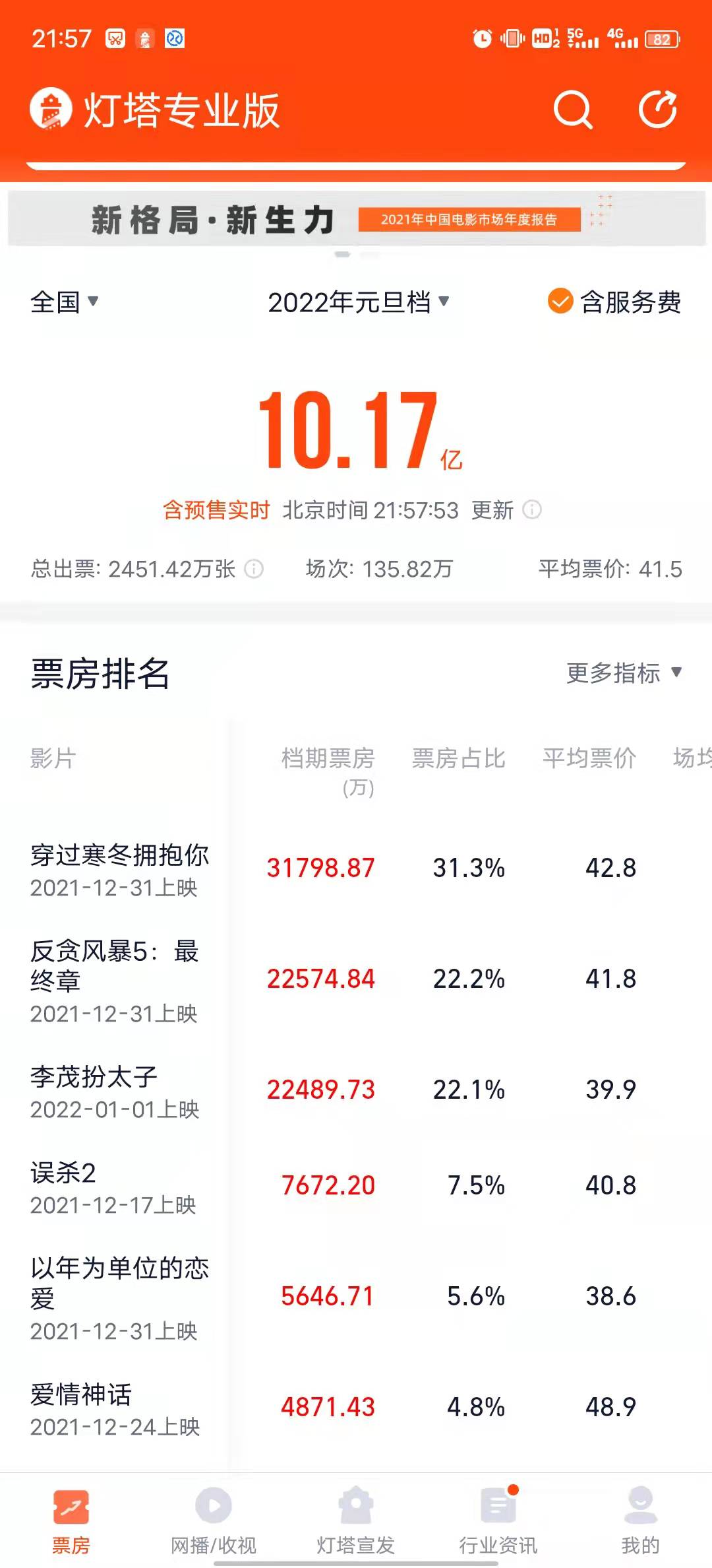 值得注意的是,主打跨年爱情策略的电影《以年为单位的恋情》的票房下滑速度更加惊人,其在2021年12月31日上映首日票房达7831万元,次日降至2957万元,上映第四天票房已经萎缩至800万元附近。