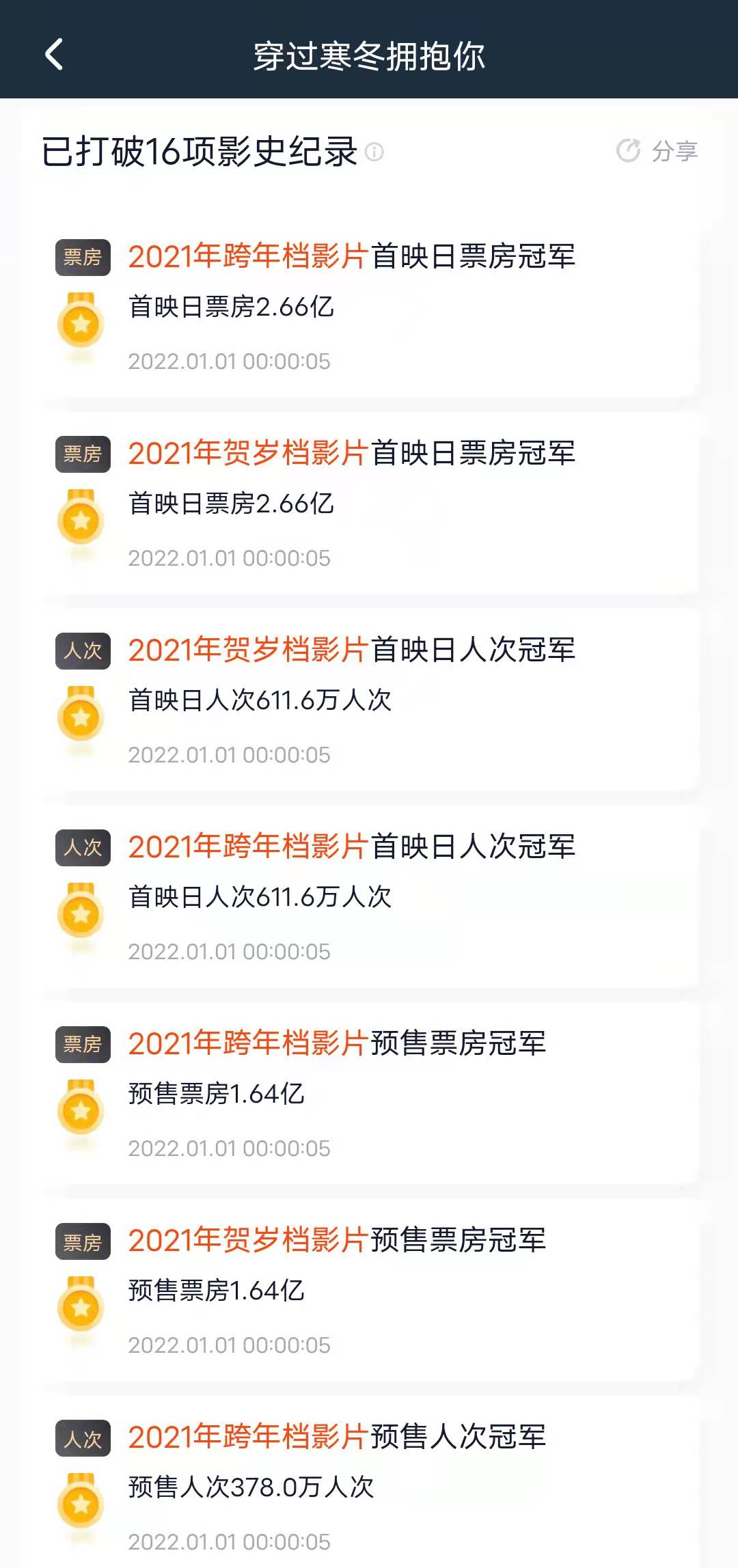 随着《穿过寒冬拥抱你》热映,想看人数激增。综合淘票票和猫眼两大平台的数据,该片累计想看人数达108.7万人。灯塔专业版数据显示,《穿过寒冬拥抱你》已经打破包括2021年贺岁档影片首日票房冠军在内16项影史纪录。
