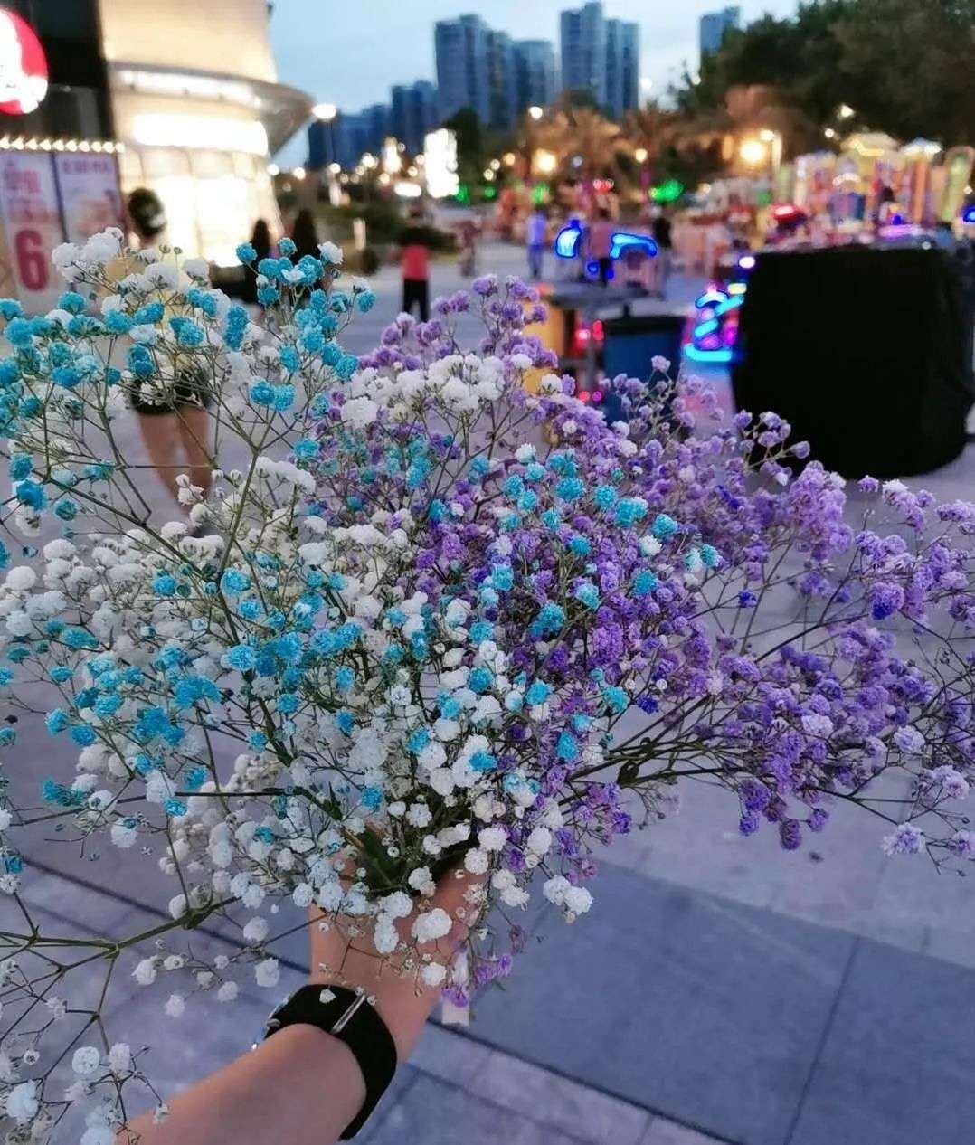 所以,在看到影院所在广场的号召之后,我在毫无准备、毫无经验的情况下,去到了广场里摆摊,卖我从花鸟市场进的花,以及影院年前囤的饮料,我们店长在卖凉席,财务出去卖拖鞋,我卖花和饮料已经算很正常了吧?