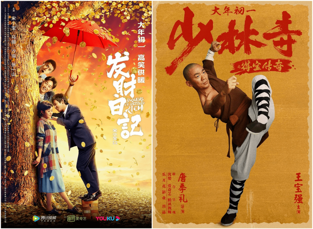 具体来看,不同于往年,今年网络电影春节档有着两部足以与院线电影媲美的重量级作品第一时间登陆三大视频平台:唐季礼执导、王宝强主演的《少林寺之得宝传奇》以及宋小宝自导自演、马丽等喜剧人主演的《发财日记》。同时,三大视频平台还有30部左右的网络电影蓄势齐发,10部左右的映后网播院线电影进行助力,数量超过往年同期。显然,这次行业性集体发力想要尽可能地满足线上观影的需求。