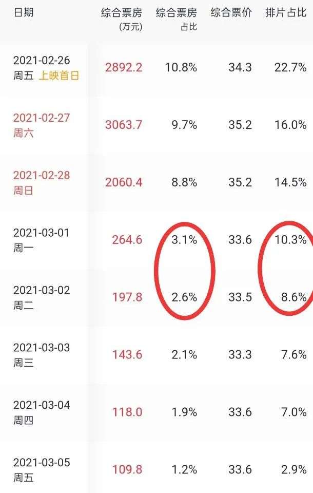 之后一周,其排片占比一直低于票房占比。低迷的市场表现也让其排片占比被不断压缩,最终仅收1.27亿元。