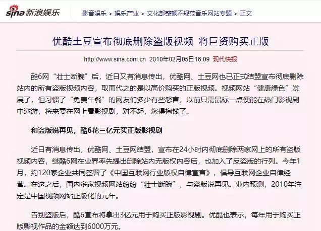 到了 2010 年 2 月,土豆宣布已经彻底删除了所有盗版视频,并斥巨资购买正版版权,土豆用“ 网友上传 ”积累起来的用户体验一夜之间分崩离析。想看好的?想跳广告?那就掏钱吧。