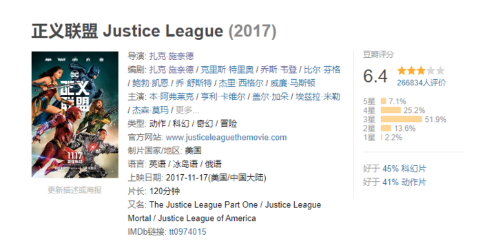 2017 年院线版《正义联盟》(以下简称院线版)在豆瓣的评价分为 6.8(扎剪版上映后暴跌至 6.4 分),有过激的粉丝评价其为:「糟糕他妈给糟糕开门,糟糕到家了。」